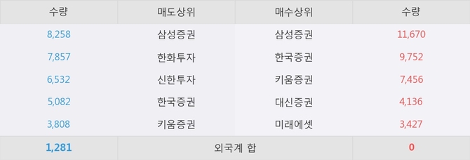 거래원 동향은 삼성증권, 미래에셋 등이 매수 상위 목록에 나타나고 있다.