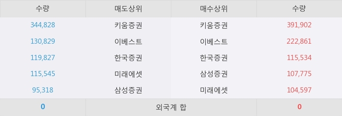 아직까지 외국계 증권사 창구를 통한 매매는 발생하지 않고 있다. 그리고 이 시간 이베스트가 매수창구상위에 올라있는 종목은 이 종목 이외에도 듀오백, 웹스 등이 있다.
