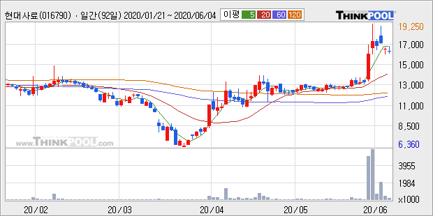 일봉 차트의 모습은 현재 단기·중기 이평선이 정배열 상태로 전형적인 상승세를 보이고 있다. 이 종목의 차트에서 최근에 최근 5일 매물대 돌파, 주가 5MA 상향돌파 등을 확인할 수 있다
