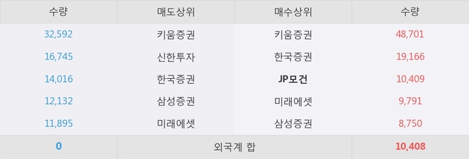 거래원 동향은 JP모건, 미래에셋, 삼성증권 등이 매수 상위 목록에 나타나고 있다.