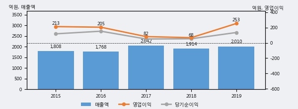 동성화학의 2019년 매출액은 2010억으로 전년대비 5.0% 상승했고, 영업이익 또한 253억으로 전년대비 273.3% 상승했다. 이 회사의 매출액 증감률과 영업이익 증감률은 각각 코스피 상위 38%, 상위 5%에 해당된다.