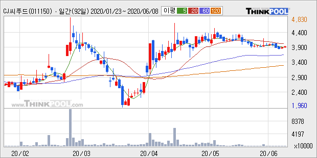 CJ씨푸드의 2019년 매출액은 전년대비 -1.0% 줄어든 1492억원이고, 영업이익 역시 전년대비 -10.4% 줄어든 37억원을 기록했다. 이 회사의 매출액 증감률과 영업이익 증감률은 각각 코스피 하위 40%, 하위 42%에 해당된다.