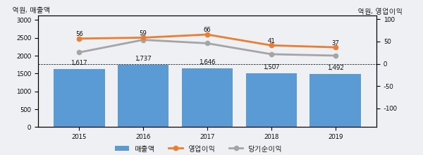 최근 3년간의 실적을 살펴보면, 매출액은 3년 연속 하락하고 있으나 그 하락폭은 줄어들고 있음을 알 수 있다.