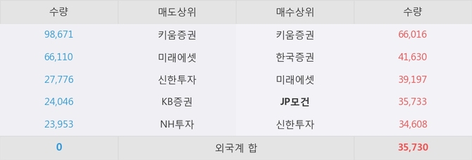 거래원 동향은 JP모건, 미래에셋이 매수 상위 목록에 나타나고 있다.