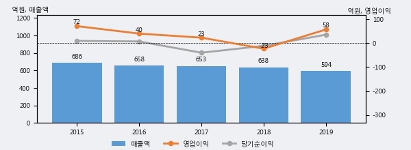 최근 3년간의 실적을 살펴보면, 매출액은 3년 연속 하락하고 있고 그 하락폭이 확대되고 있어서 투자자들은 주의깊게 살펴볼 필요가 있다.