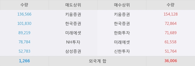 이 시각 주요 거래원은 미래에셋, 키움증권, 한국증권 등이 매수 상위 창구에 자리하고 있다.