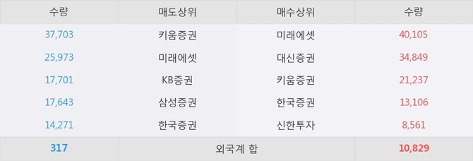 이 시각 주요 거래원은 미래에셋, 대신증권, 키움증권 등이 매수 상위 창구에 자리하고 있다.