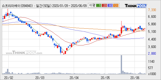 [그래프]슈프리마에이치큐 일봉 차트