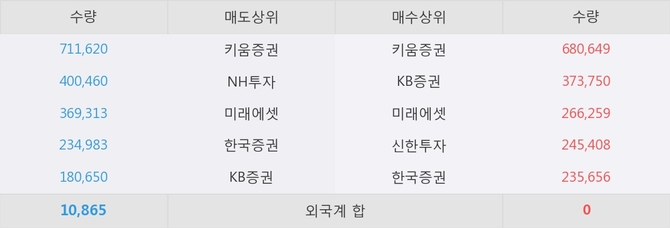 이 시각 주요 거래원은 미래에셋, 키움증권, KB증권 등이 매수 상위 창구에 자리하고 있다.