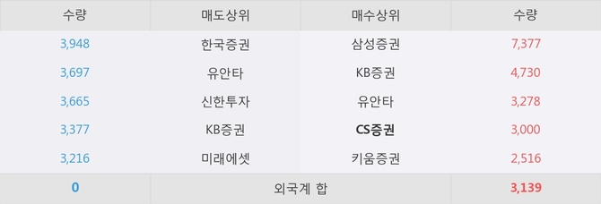 거래원 동향은 CS증권, 삼성증권이 매수 상위 목록에 나타나고 있다.