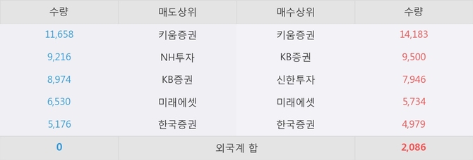 이 시각 주요 거래원은 미래에셋, 키움증권, KB증권 등이 매수 상위 창구에 자리하고 있다.