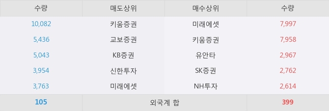 이 시각 주요 거래원은 미래에셋, 키움증권, 교보증권 등이 매도 상위 창구에 자리하고 있다.