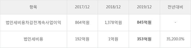 [표]한일홀딩스 법인세 납부 추이