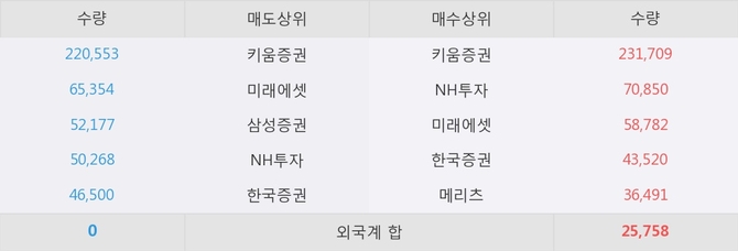 거래원 동향은 NH투자, 미래에셋, 메리츠 등이 매수 상위 목록에 나타나고 있다.