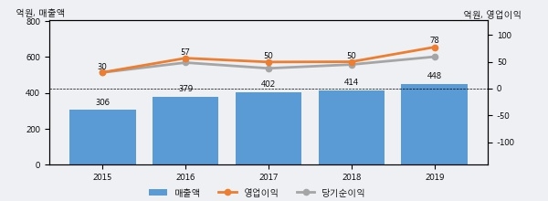최근 3년간의 실적을 살펴보면 안정적 성장세를 보이고 있다. 최근 3년간 매출로 볼 때 매년 꾸준히 증가하고 있고 그 증가폭도 확대되고 있다.