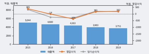 최근 3년간의 실적을 살펴보면, 매출액은 3년 연속 하락하고 있으나 그 하락폭은 줄어들고 있음을 알 수 있다.