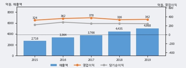 최근 3년간의 실적을 살펴보면 안정적 성장세를 보이고 있다. 최근 3년간 매출로 볼 때 매년 꾸준히 증가하고 있다. 다만 최근에 그 증가폭이 다소 감소하고 있다.