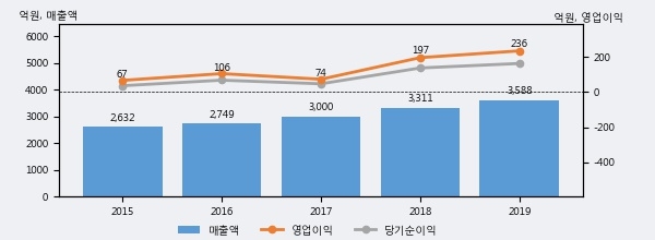 최근 3년간의 실적을 살펴보면 안정적 성장세를 보이고 있다. 최근 3년간 매출로 볼 때 매년 꾸준히 증가하고 있다. 다만 최근에 그 증가폭이 다소 감소하고 있다.