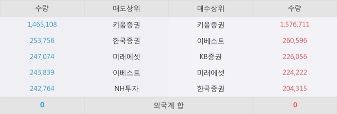 아직까지 외국계 증권사 창구를 통한 매매는 발생하지 않고 있다. 그리고 이 시간 이베스트가 매수창구상위에 올라있는 종목은 이 종목 이외에도 남광토건, 상상인증권 등이 있다.