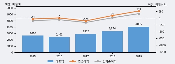 최근 3년간의 실적을 살펴보면 안정적 성장세를 보이고 있다. 최근 3년간 매출로 볼 때 매년 증가하고 있고 그 증가폭도 확대되고 있다.