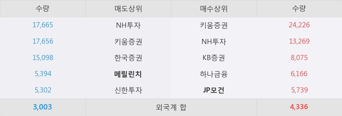 거래원 동향은 JP모건, NH투자, 하나금융 등이 매수 상위 목록에 나타나고 있다. 한편, 매도 창구 상위에는 메릴린치가 눈에 띄고 있다.
