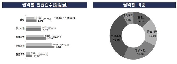 한편, 금감원의 1분기 민원 처리 건수는 2만101건으로 6.3%(1천189건) 증가했다.