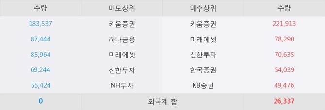 이 시각 주요 거래원은 미래에셋, 키움증권, 신한투자 등이 매수 상위 창구에 자리하고 있다.