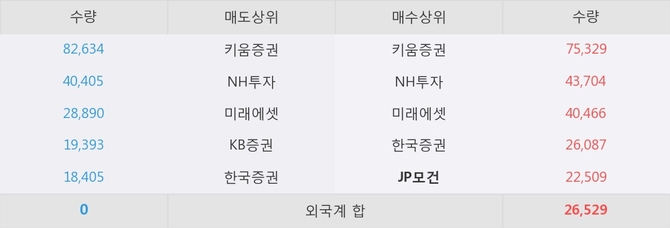 거래원 동향은 JP모건, NH투자, 미래에셋 등이 매수 상위 목록에 나타나고 있다.