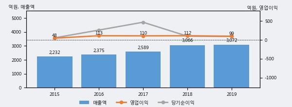 최근 3년간의 실적을 살펴보면 안정적 성장세를 보이고 있다. 최근 3년간 매출로 볼 때 매년 꾸준히 증가하고 있다. 다만 최근에 그 증가폭이 다소 감소하고 있다.