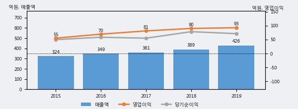 최근 3년간의 실적을 살펴보면 안정적 성장세를 보이고 있다. 최근 3년간 매출로 볼 때 매년 꾸준히 증가하고 있고 그 증가폭도 확대되고 있다.