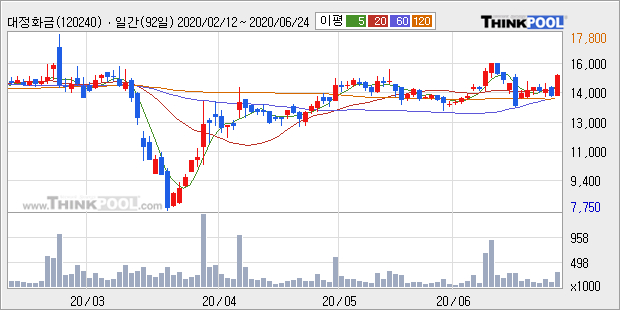 대정화금의 2019년 매출액은 전년대비 7.8% 늘어난 796억원이고, 영업이익 또한 전년대비 12.2% 늘어난 104억원을 기록했다. 이 회사의 매출액 증감률과 영업이익 증감률은 각각 코스닥 상위 45%, 상위 43%에 해당된다.