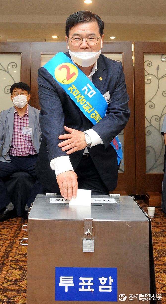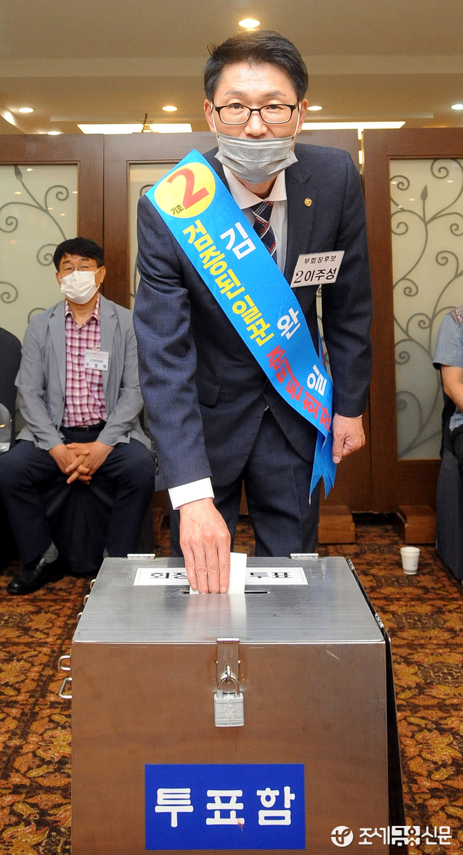 [포토뉴스]서울세무사회장 선거에 투표하는 기호2번 김완일 회장 후보와 장경상-이주성 부회장 후보