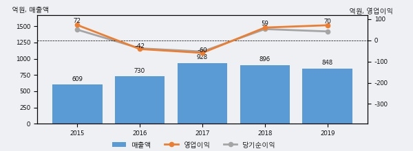 NHN벅스는 2019년 매출액 848억원과 영업이익 70억원을 기록했다. 전년대비 매출은 -5.4% 하락했고, 영업이익은 18.4% 상승했다. 이 회사의 매출액 증감률과 영업이익 증감률은 각각 코스닥 하위 29%, 상위 40%에 해당된다.