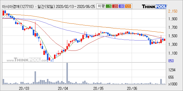아시아경제의 2019년 매출액은 384억으로 전년대비 -0.1% 하락했고, 영업이익 역시 33억으로 전년대비 -43.0% 하락했다. 이 회사의 매출액 증감률과 영업이익 증감률은 각각 코스닥 하위 39%, 하위 30%에 해당된다.