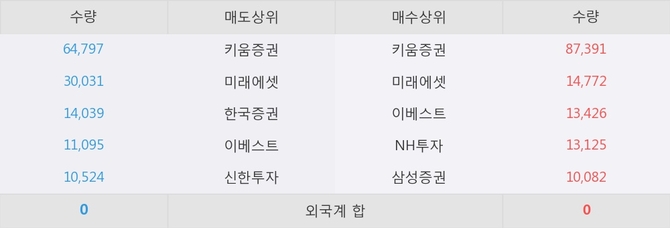 거래원 동향은 미래에셋, NH투자, 삼성증권 등이 매수 상위 목록에 나타나고 있다.