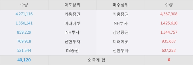 거래원 동향은 NH투자, 삼성증권, 미래에셋 등이 매수 상위 목록에 나타나고 있다.