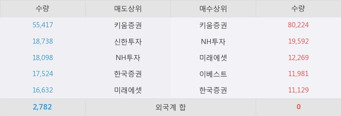 거래원 동향은 NH투자, 미래에셋 등이 매수 상위 목록에 나타나고 있다.