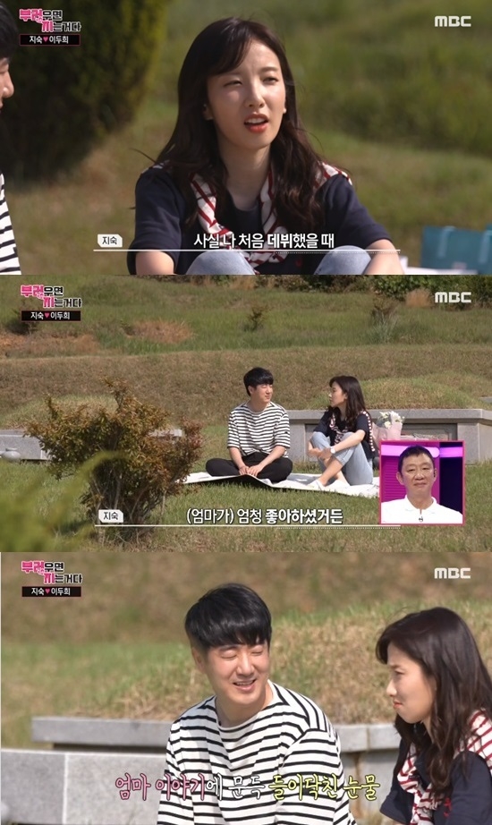 지숙은 29일 MBC '부러우면 지는거지'(이하 '부럽지')에서 어머니 산소를 찾아갔다.