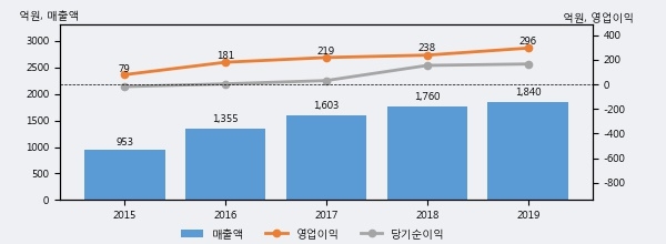 최근 3년간의 실적을 살펴보면 안정적 성장세를 보이고 있다. 최근 3년간 매출로 볼 때 매년 꾸준히 증가하고 있다. 다만 최근에 그 증가폭이 다소 감소하고 있다.