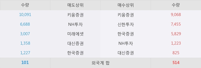 이 시각 주요 거래원은 NH투자, 키움증권, 신한투자 등이 매수 상위 창구에 자리하고 있다.