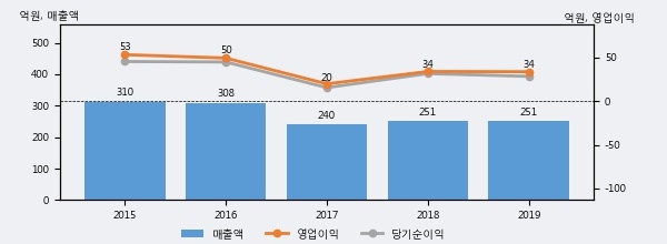 대성미생물의 2019년 매출액은 전년대비 0.1% 늘어난 251억원이고, 영업이익은 전년대비 -0.9% 줄어든 34억원을 기록했다. 이 회사의 매출액 증감률과 영업이익 증감률은 각각 코스닥 하위 39%, 하위 50%에 해당된다.