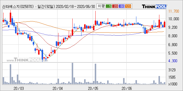 신라에스지의 2019년 매출액은 전년대비 23.3% 늘어난 894억원이고, 영업이익 또한 전년대비 144.2% 늘어난 21억원을 기록했다. 이 회사의 매출액 증감률과 영업이익 증감률은 각각 코스닥 상위 22%, 상위 14%에 해당된다.