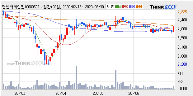 팬엔터테인먼트는 2019년 매출액 402억원과 영업이익 11억원을 기록했다. 전년대비 매출은 204.5% 상승했고, 영업이익은 흑자전환했다. 이 회사의 매출액 증감률과 영업이익 증감률은 각각 코스닥 상위 2%, 상위 7%에 해당된다.