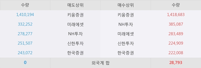 거래원 동향은 NH투자, 미래에셋 등이 매수 상위 목록에 나타나고 있다.