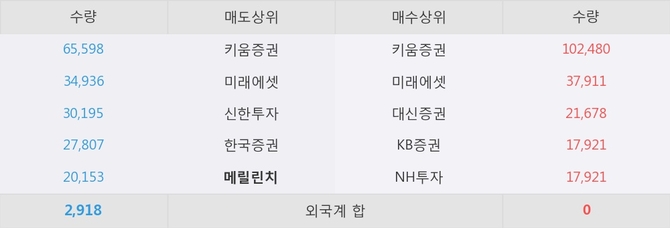 거래원 동향은 미래에셋, NH투자 등이 매수 상위 목록에 나타나고 있다. 한편, 매도 창구 상위에는 메릴린치가 눈에 띄고 있다.