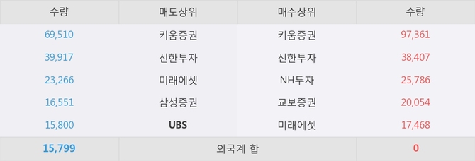 거래원 동향은 NH투자, 미래에셋 등이 매수 상위 목록에 나타나고 있다. 한편, 매도 창구 상위에는 UBS이 눈에 띄고 있다.