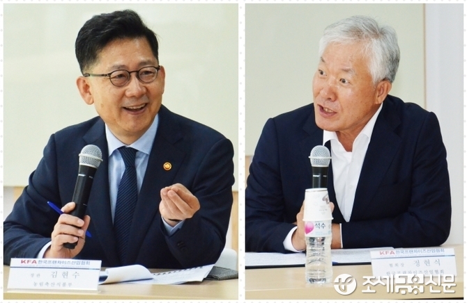 <함께 바꿔요 건강한 식문화>를 캐치프레이즈로 열린 발대식에는 정현식 협회장과 김현수 농식품부 장관, 김종구 농식품부 식품산업정책관 등 정부 관계자, 캠페인 동참 회원사 10개사 대표 등 총 30여명이 참석했다.