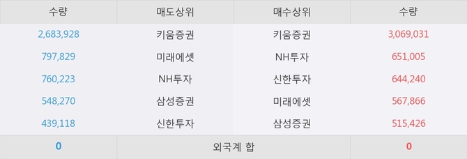 거래원 동향은 NH투자, 미래에셋, 삼성증권 등이 매수 상위 목록에 나타나고 있다.