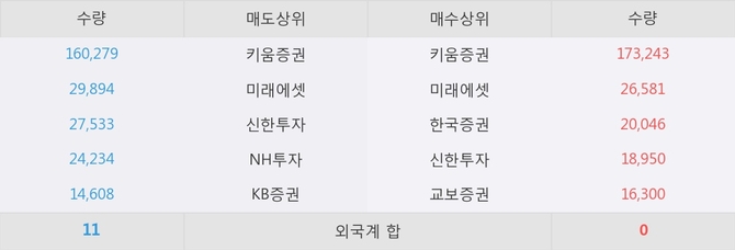 이 시각 주요 거래원은 미래에셋, 키움증권, 한국증권 등이 매수 상위 창구에 자리하고 있다.