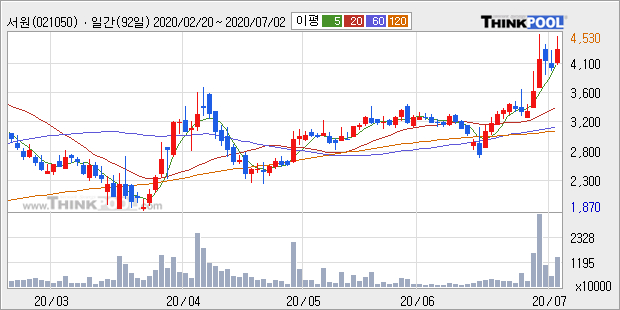 서원의 2019년 매출액은 전년대비 -0.1% 줄어든 2577억원이고, 영업이익 역시 전년대비 -7.2% 줄어든 80억원을 기록했다. 이 회사의 매출액 증감률과 영업이익 증감률은 각각 코스피 하위 43%, 하위 44%에 해당된다.